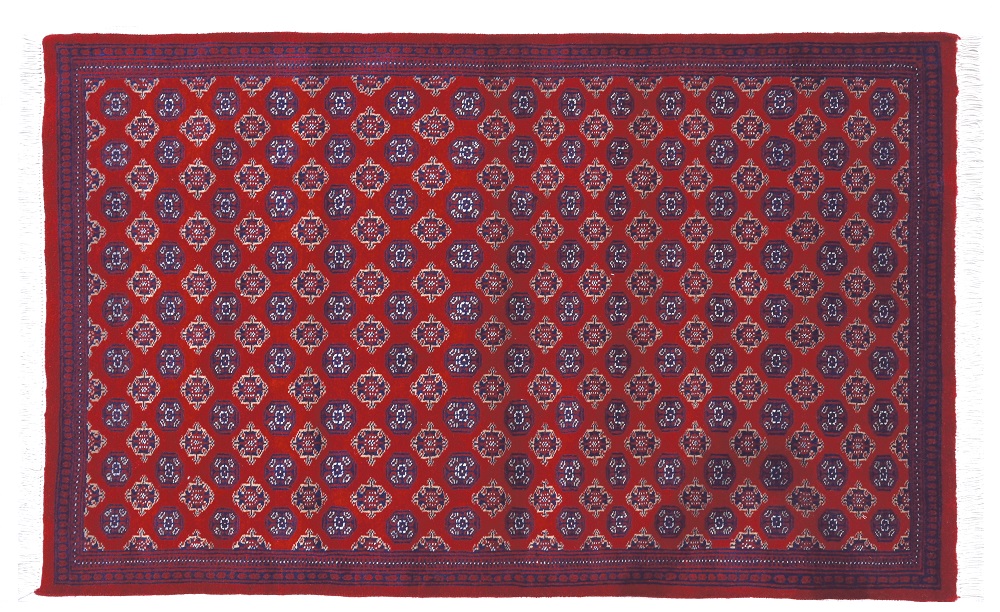 ・手織り絨毯の古典デザイン「ボハラ」・中央アジアのオアシス地帯に集結する部族や遊牧民集団はそれぞれの紋章によって統括され、団結を保っていました。・ボハラマークは今日でもシンボルマークとして国旗に奉られるほど誉れ高いものです。 |